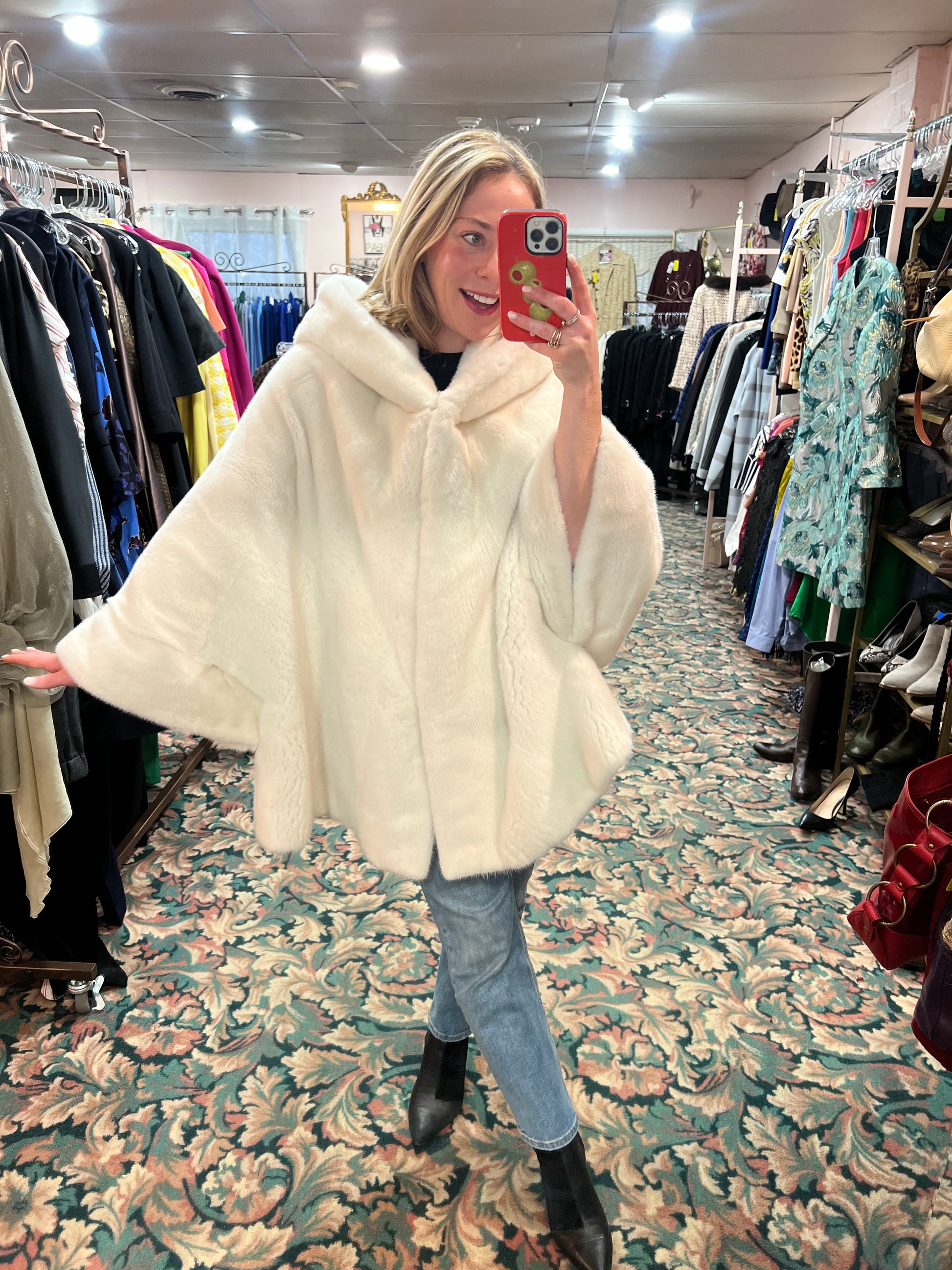 American Legend White Mink Cape Poncho