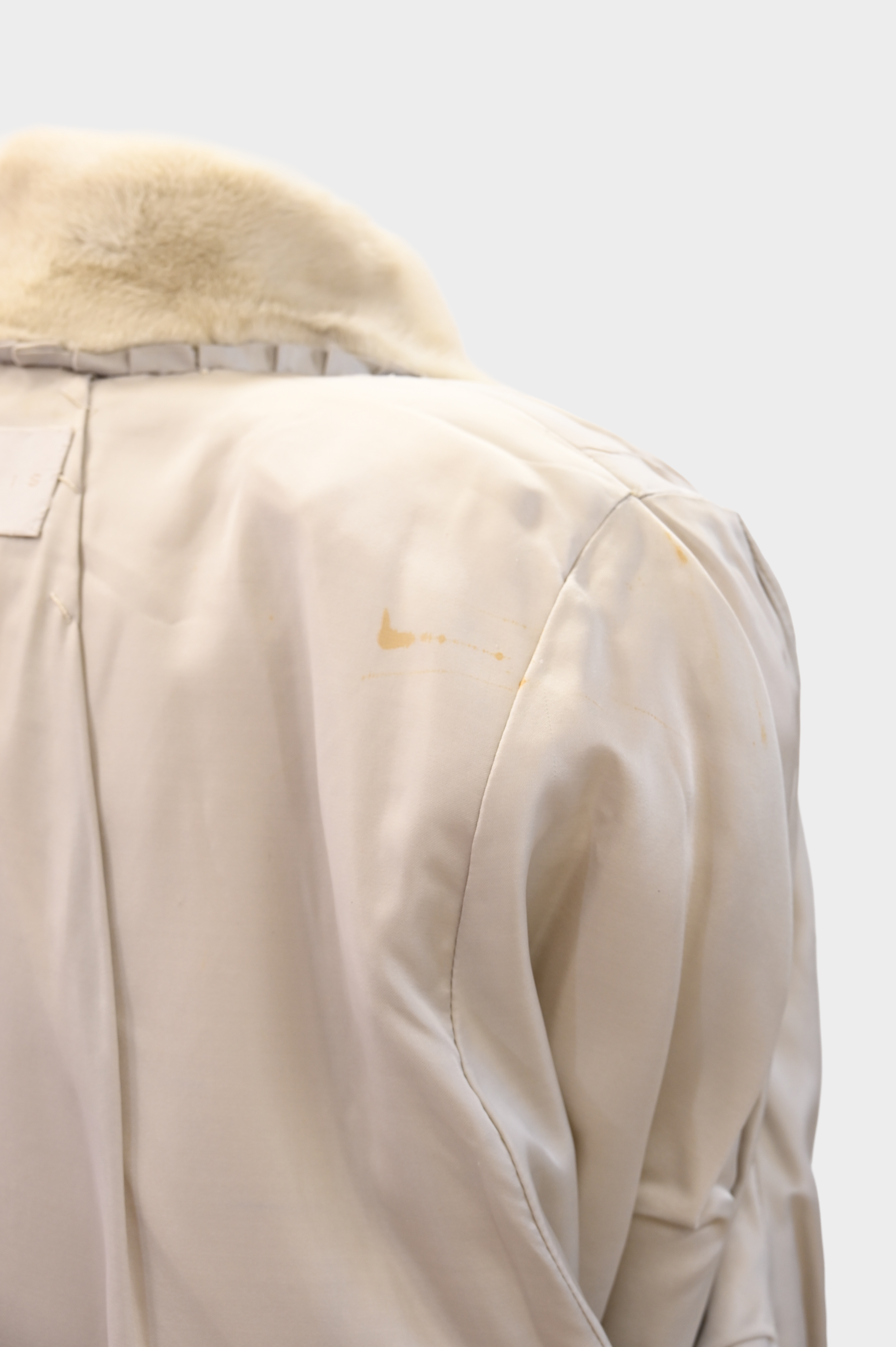 - Pre-loved, shows no tears rips or stain on fur. Interior lining in tact, with spot on left shoulder as shown in photo